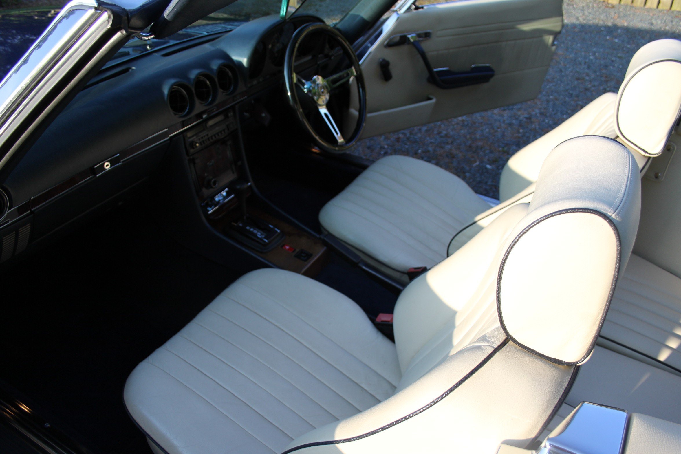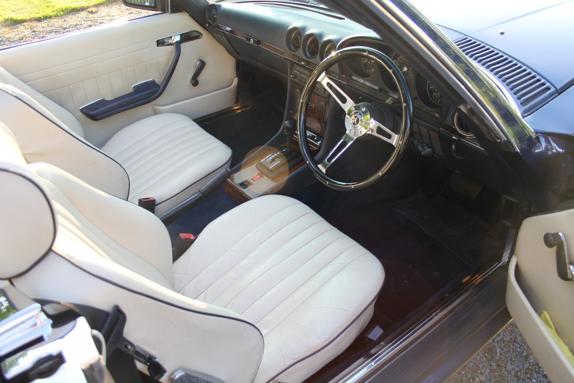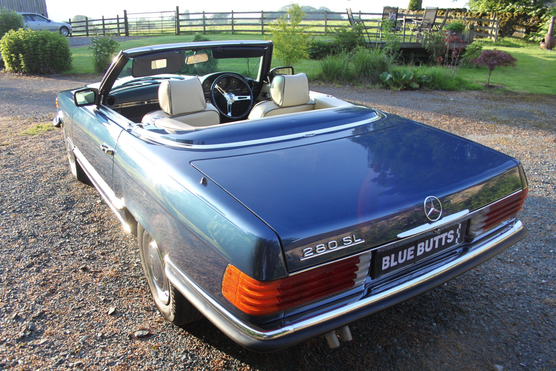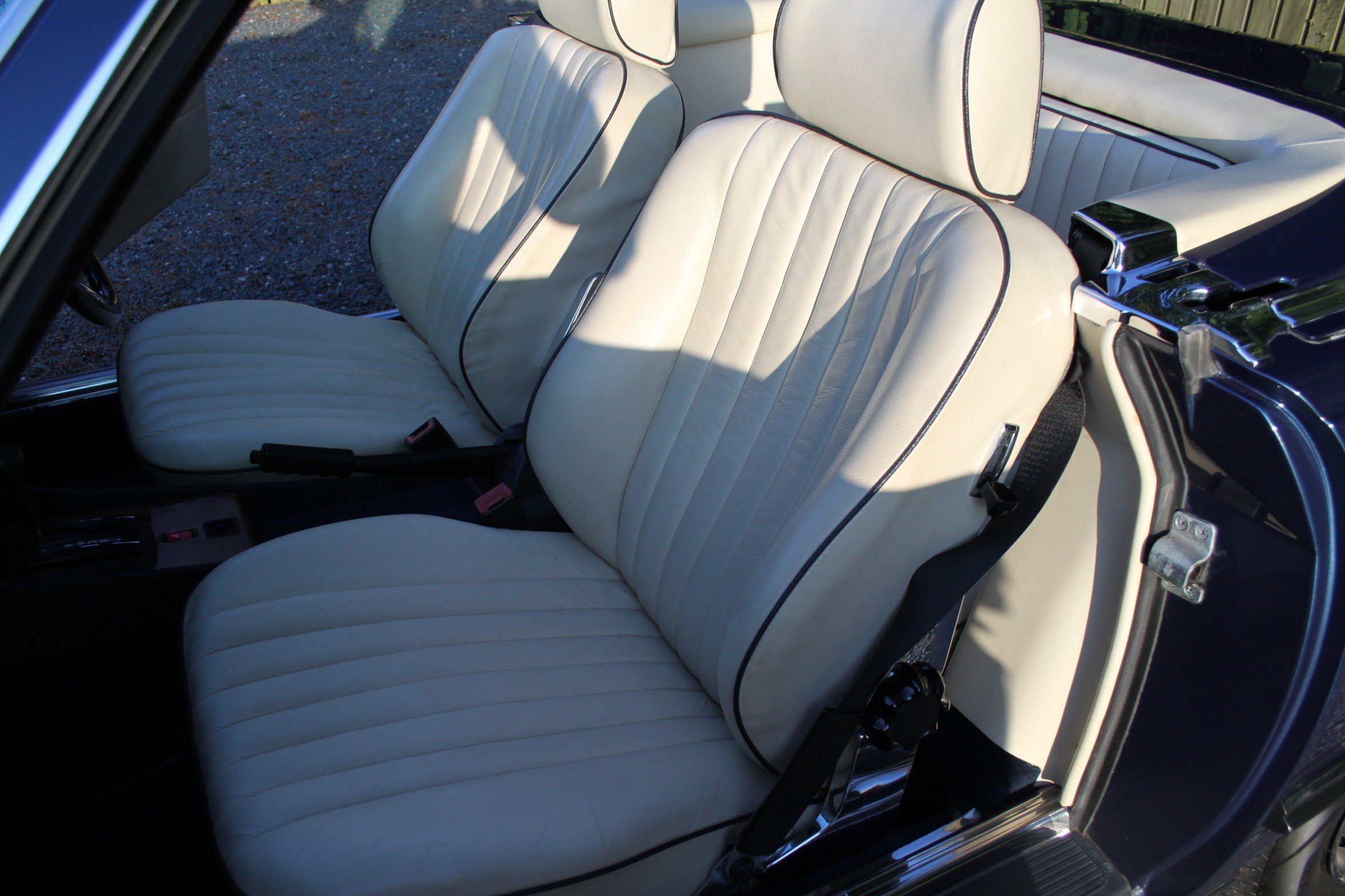 This simply stunning 280SL was first registered in 1986, and in that time has covered a genuine 97000 miles in total. The Nautic Blue Paintwork absolutely gleams. The Magnolia Leather interior is soft and supple and virtually unmarked. Well, as is the rest of the car in reality.