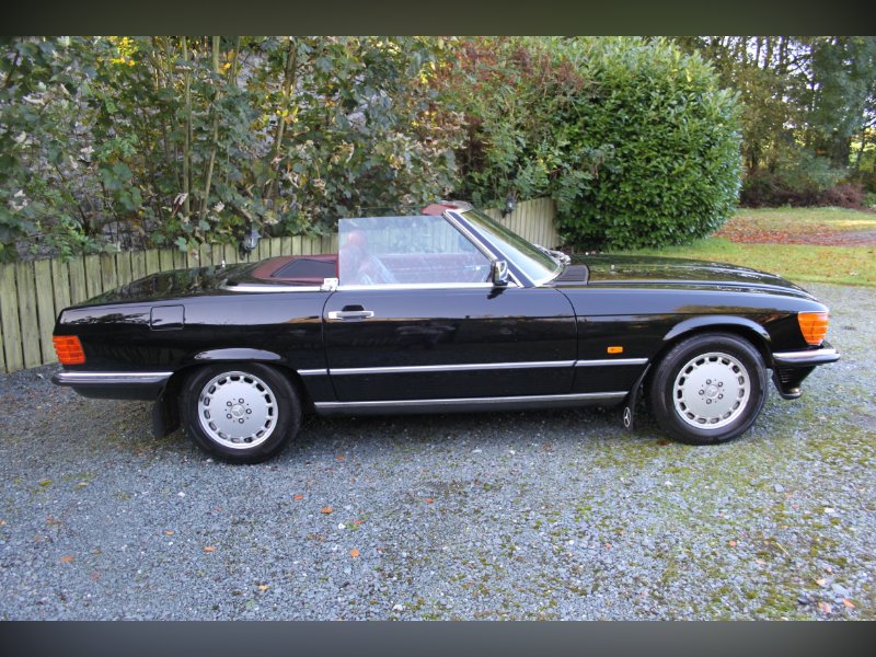 Nothing personifies sophistication better than a Mercedes SL. They have a style that many have copied over the years but have never quite managed to achieve that certain something. Suave, stylish, practical, and drop dead gorgeous. An SL does something for whoever is driving. This simply stunning 300SL was first registered in 1986, and in that time has covered a genuine 91000 miles in total. The Black paintwork absolutely gleams. The Burgundy leather interior is soft and supple. Out on the road, there isn’t a rattle or a squeak, it is a sheer joy. This car of course comes with both Hardtop and Soft tops.