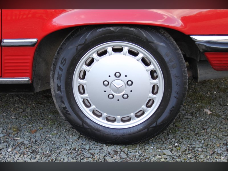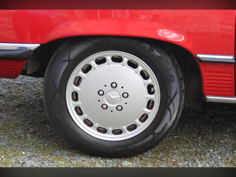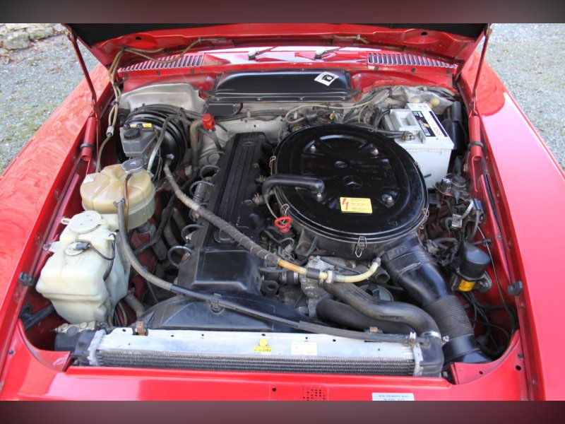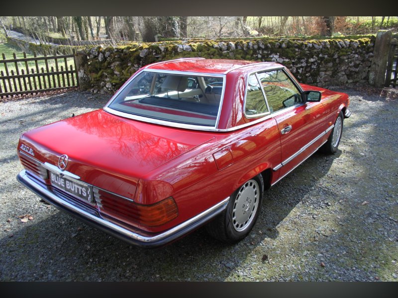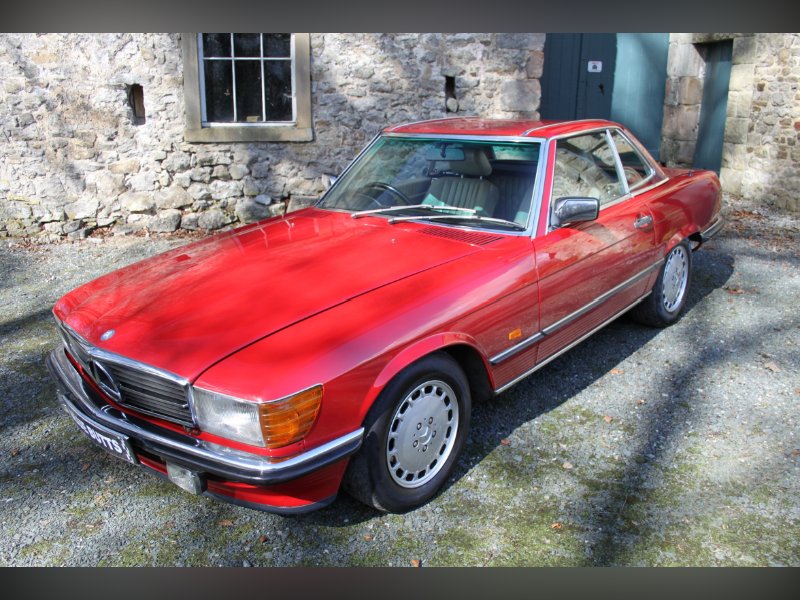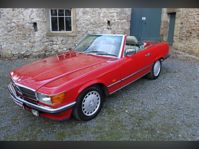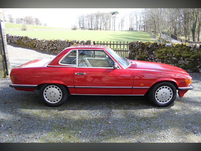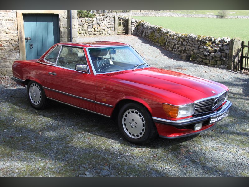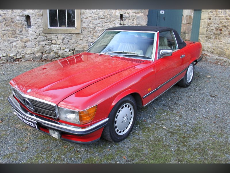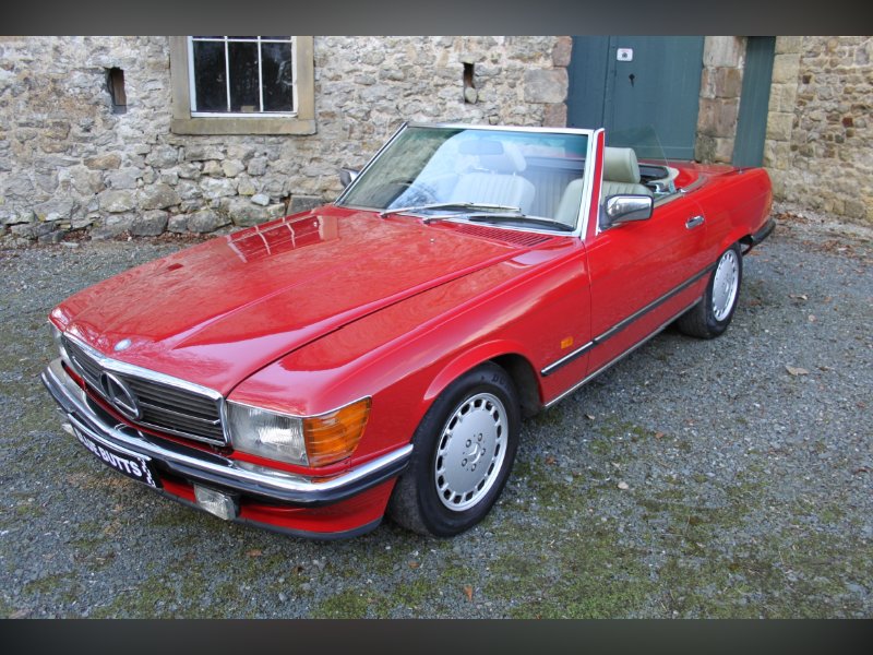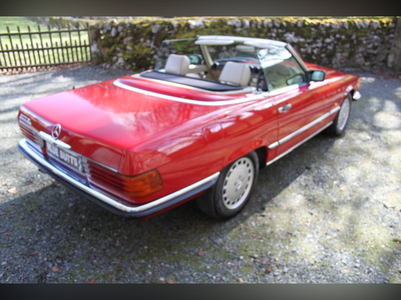 This car from 1989, is one of the last of the 107 model. Finished in red with Ivory interior. It comes complete with Hard and Soft tops, alloy wheels and a history to die for.