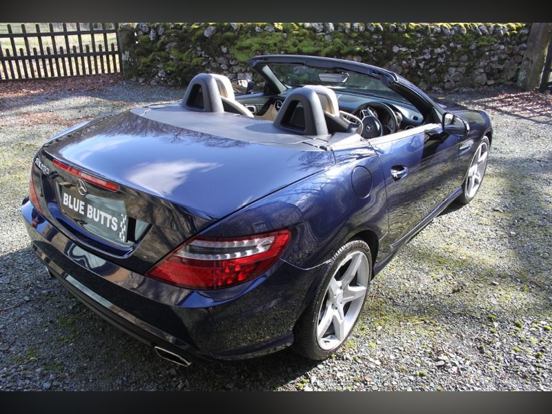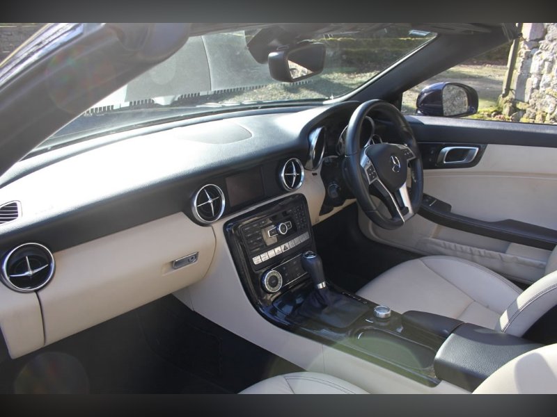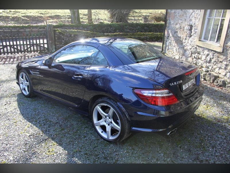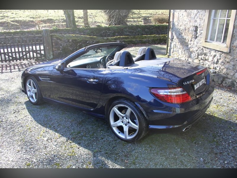Mercedes Benz SLK250 (Petrol)2012 (12), Mercedes Sls have been one of the most stylish open topped Gran Tourers since the 1950s. A car to see and be seen in. The SLK was introduced in 1996 to broaden the range. And what a tremendous success the car has been. This car is a 2012 (12) SLK250. Its fitted with the 204BHP petrol power unit, so she goes really well. Finished in Nautic Blue with Ivory Hide interior. It's fitted with Electric Folding Roof, Electric Windows, Climate Control, Air Scarf, MB Command including Sat Nav. 18” AMG alloy wheels with recent tyres changed due to age rather than wear, it’s a truly fabulous spec car. It comes with full-service history having covered only 15,000 miles from new, and it previously belonged to the wife of a very well-known local sports personality. This is a car that truly wants for nothing. If you want the sophistication of Mercedes open topped motoring, then look no further. You won’t find a better example than this for only £13995