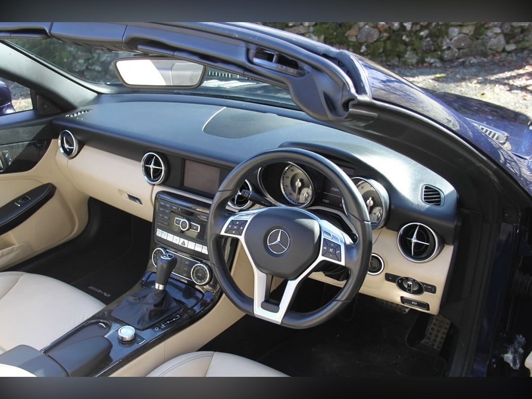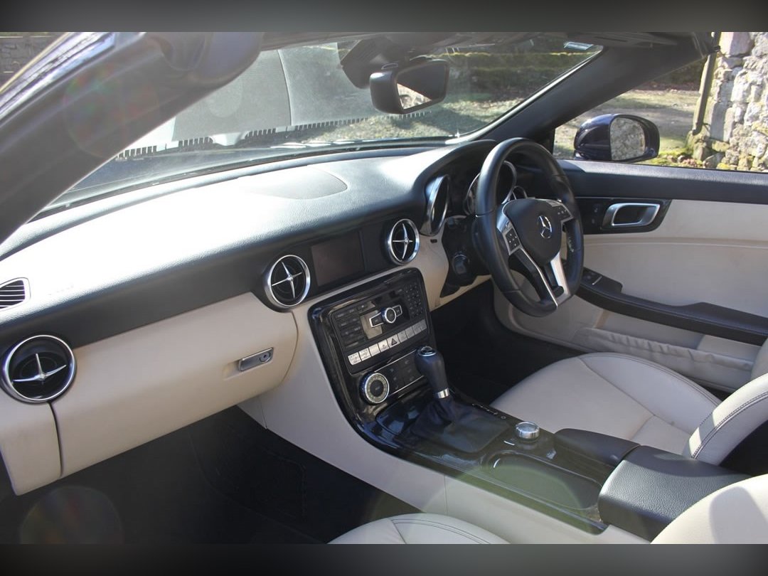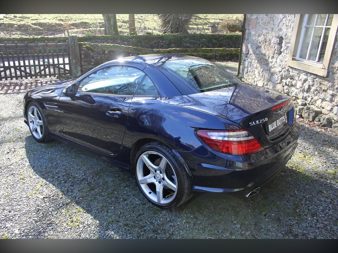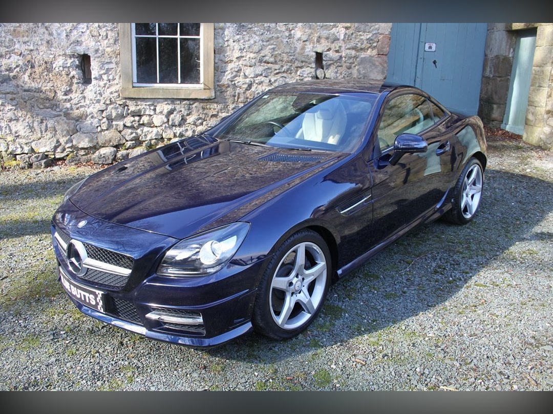 Mercedes Benz SLK250 (Petrol)2012 (12), Mercedes Sls have been one of the most stylish open topped Gran Tourers since the 1950s. A car to see and be seen in. The SLK was introduced in 1996 to broaden the range. And what a tremendous success the car has been. This car is a 2012 (12) SLK250. Its fitted with the 204BHP petrol power unit, so she goes really well. Finished in Nautic Blue with Ivory Hide interior. It's fitted with Electric Folding Roof, Electric Windows, Climate Control, Air Scarf, MB Command including Sat Nav. 18” AMG alloy wheels with recent tyres changed due to age rather than wear, it’s a truly fabulous spec car. It comes with full-service history having covered only 15,000 miles from new, and it previously belonged to the wife of a very well-known local sports personality. This is a car that truly wants for nothing. If you want the sophistication of Mercedes open topped motoring, then look no further. You won’t find a better example than this for only £13995