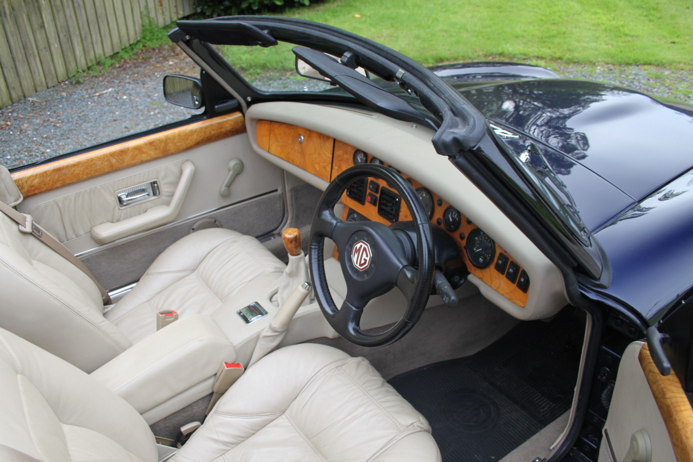 Yes this is a 1996 Oxford Blue MGR V8 with Magnolia Leather interior, and yes it’s a genuine UK car from new. Its in truly stunning condition with only 43000 miles showing on the clock.. The paintwork simply gleams, the Magnolia Leather interior, looks almost like new, which on these is a very rare occurrence. Also the car is fitted with an uprated rear suspension system, which truly transforms the handling. Its comes with an excellent condition soft top, and both long and short tonneau covers.
